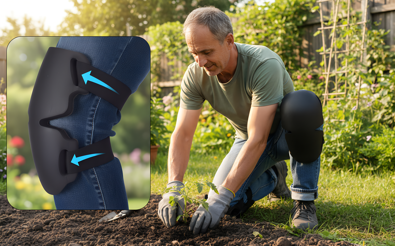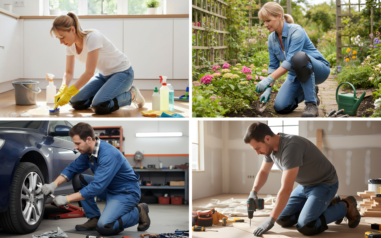 Lange opgaver på hårdt underlag kan hurtigt give ømme knæ. Ortorex-beskyttere aflaster leddene, mens du arbejder eller laver havearbejde. Nem justering gør, at du kan bevæge dig frit uden besvær.