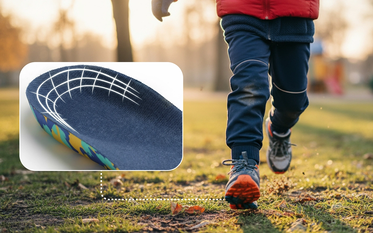 Ømhed kan forhindre børn i at nyde leg og sport. Speciel polstring hjælper med at reducere belastning fra at stå eller bevæge sig hele dagen.