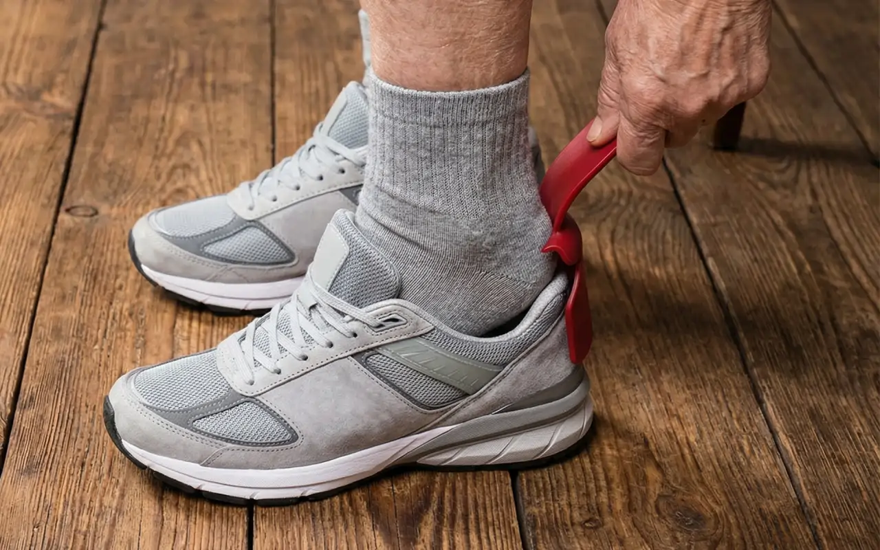 Jeg var træt af at kæmpe med stramme sneakers. Denne hjælper guider hælen lige ind og forhindrer hælkanten i at folde, så skoene stadig ser nye ud.