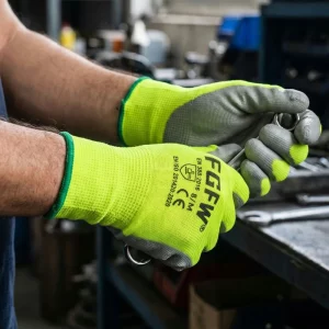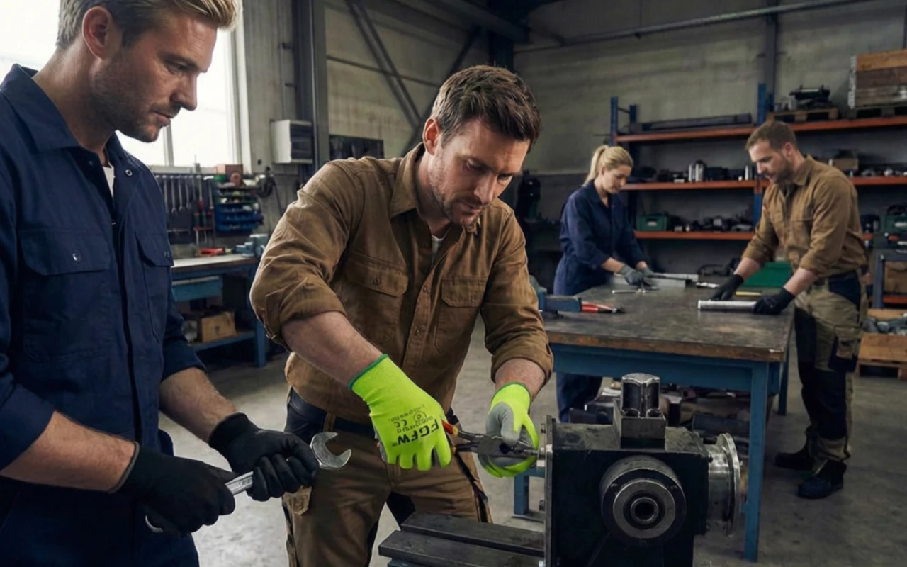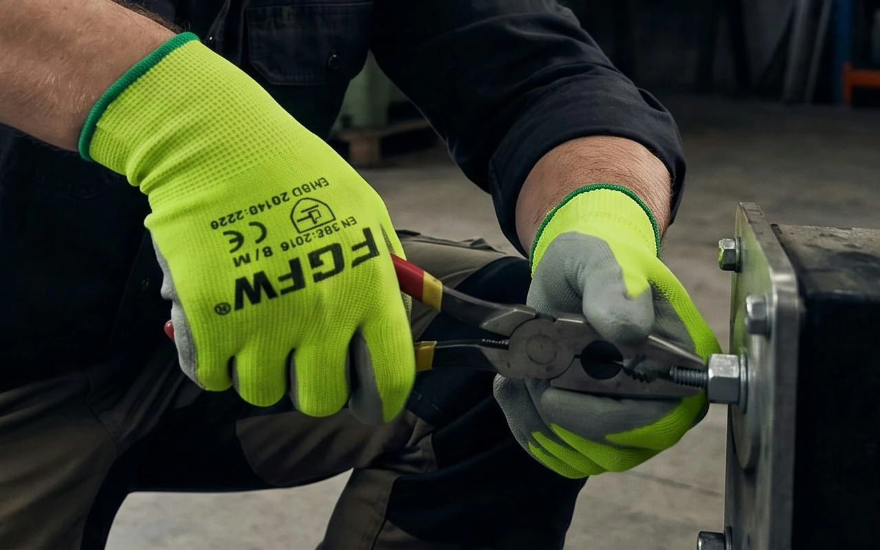 Specielle PU-håndflader forhindrer værktøj i at glide ud af svedige fingre. Sikker håndtering forbedrer præcisionen og mindsker ulykker i travle arbejdsdage.