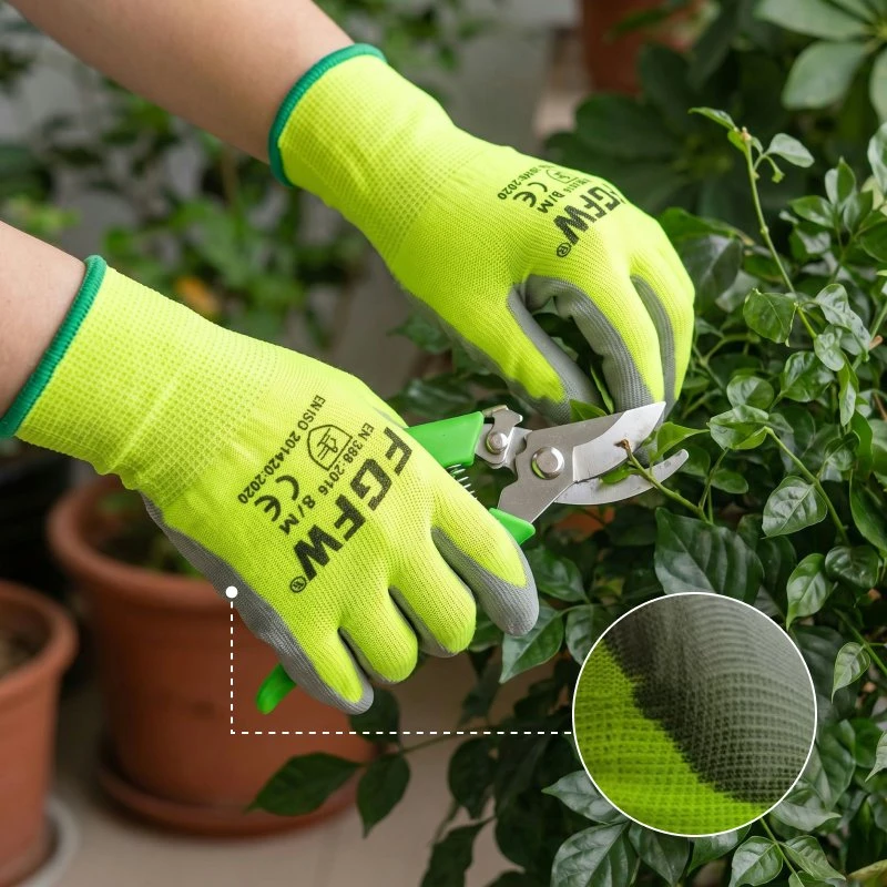 Disse handsker gør det meget lettere at slå græs og luge ukrudt. Ikke mere jord under neglene, og belægningen holder grebet om plæneklipperens håndtag, selv når mine hænder sveder.