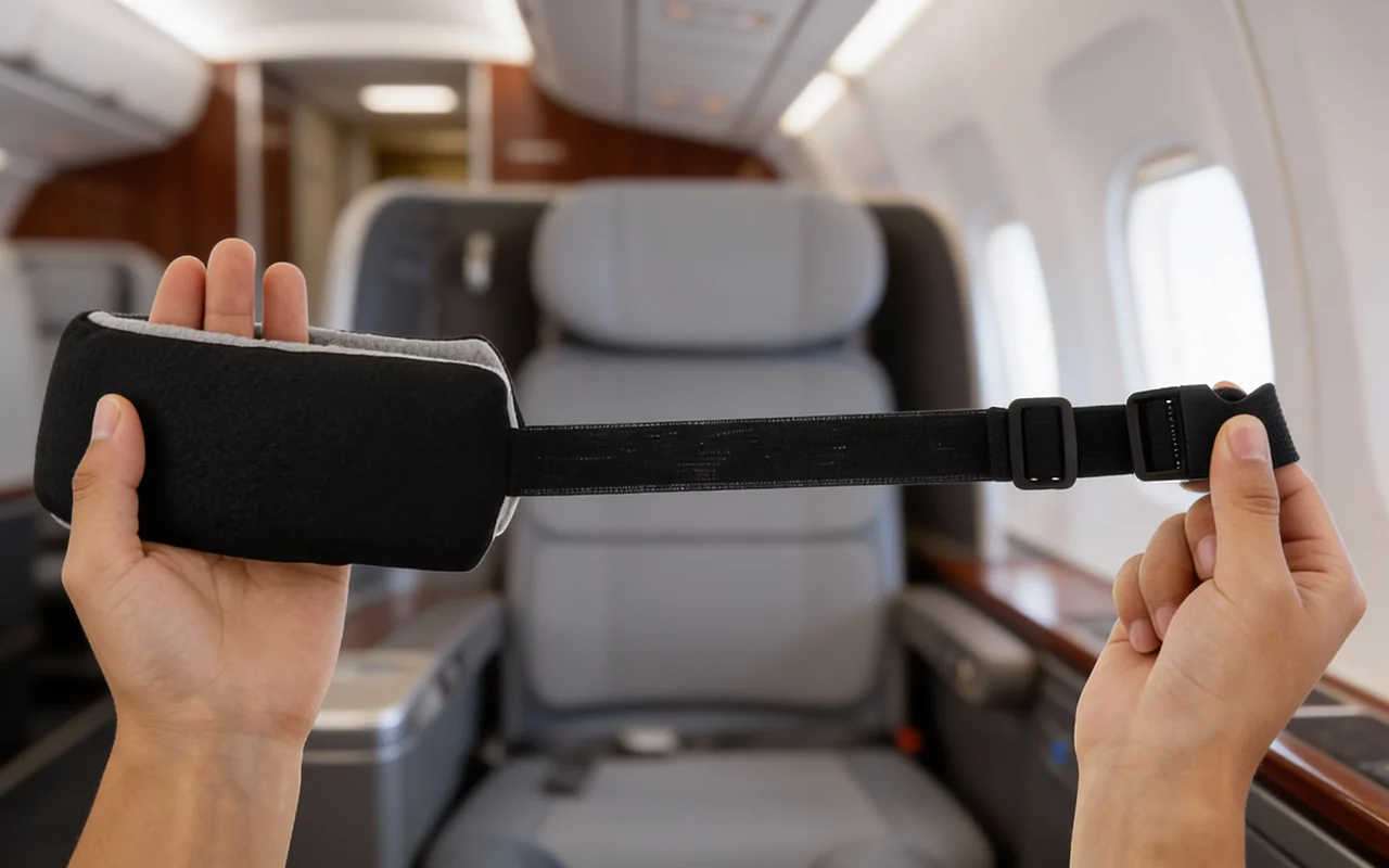 Pandebåndet er så blødt og skånsomt mod min hud. Jeg kan godt lide, at det bliver siddende og holder mit hoved stille, selv når jeg sover. Så god en idé til rejsen.