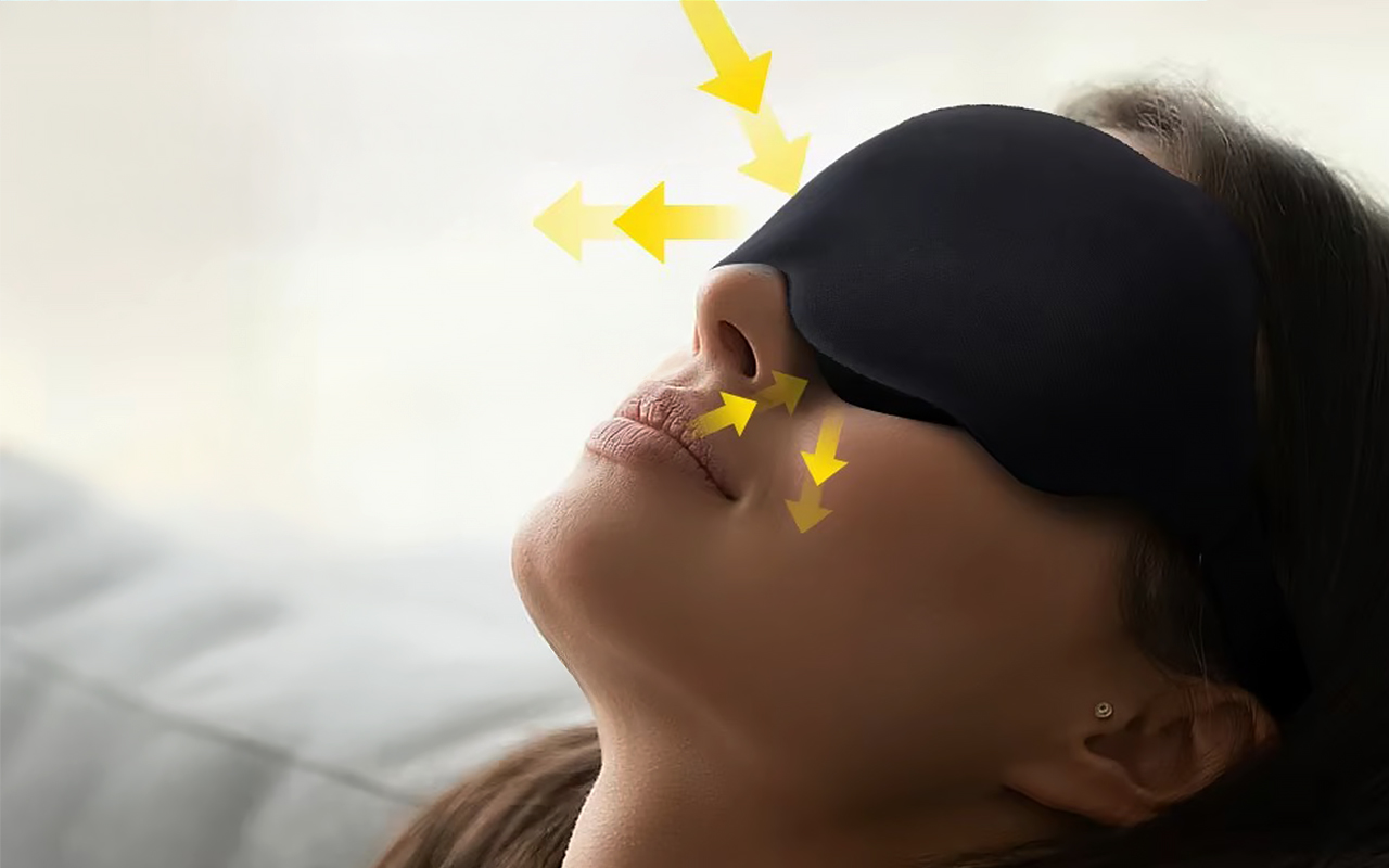 Lys kan ikke snige sig ind gennem kanterne eller næseområdet. Sov godt når som helst, hvor som helst, uden irriterende lys der forstyrrer dig.