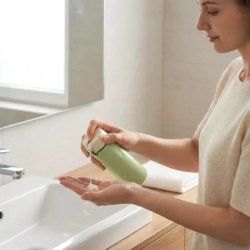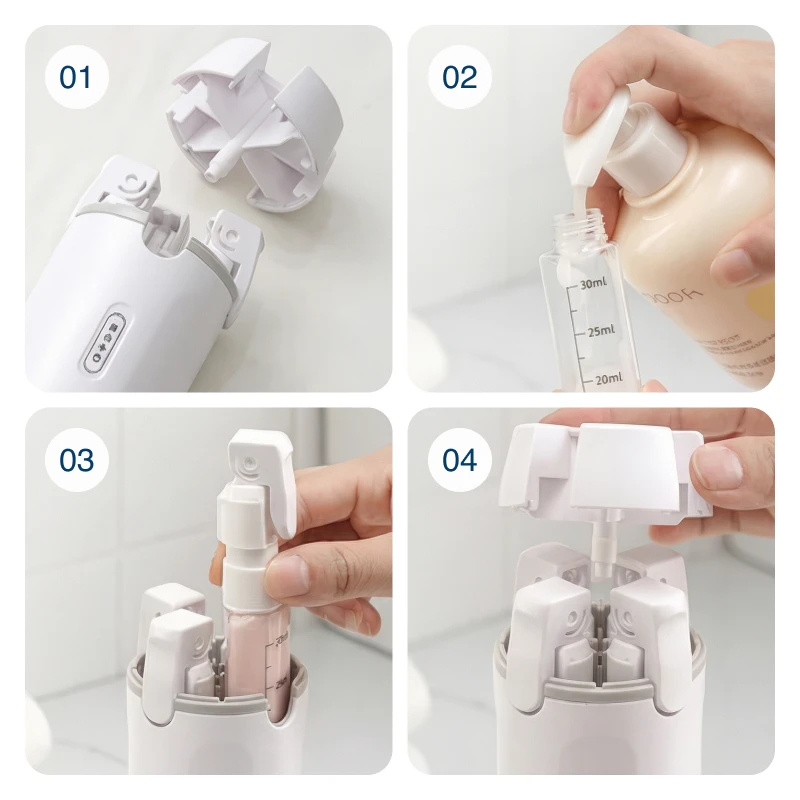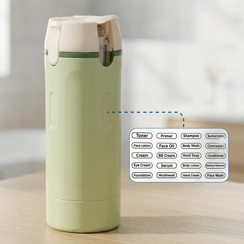 Så glad for denne dispenser – den sparer så meget tid ved pakning og holder mine toiletsager let tilgængelige og nemme at kende forskel på.