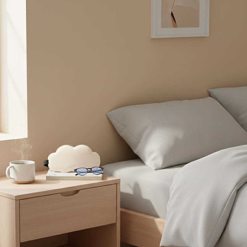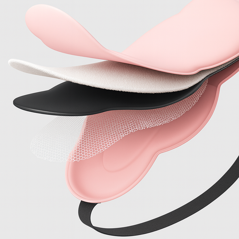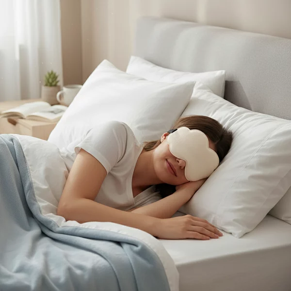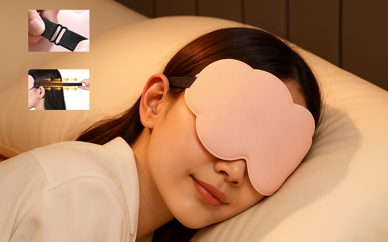 Vores øjenmaske er designet til at følge alle ansigtets kurver og eliminerer tryk på øjne og næseryg. Den sikrer komfort i alle sovestillinger og mindsker risikoen for mærker på huden.