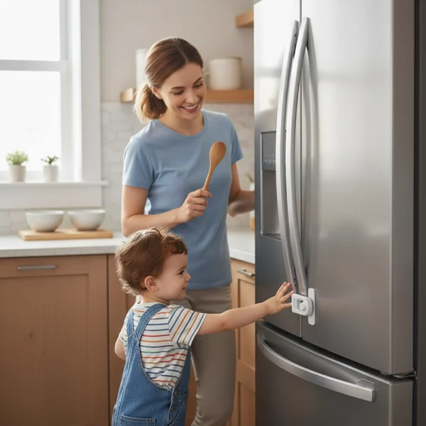 Jeg bruger denne køleskabslås i min dagpleje. Den passer til forskellige dørtyper, holder godt hele dagen, og forældrene er glade for at vide, at børnene ikke kan nå rester eller glas.
