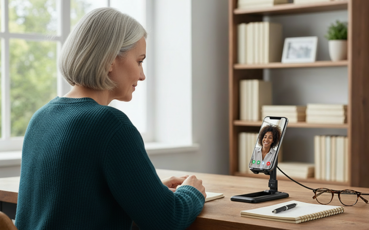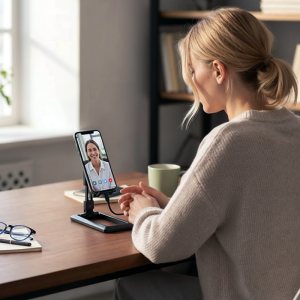 Jeg bruger holderen til videosamtaler med mine venner. Den kan stå overalt, holder min telefon godt fast, og jeg skal ikke bekymre mig om, at den glider ned.
