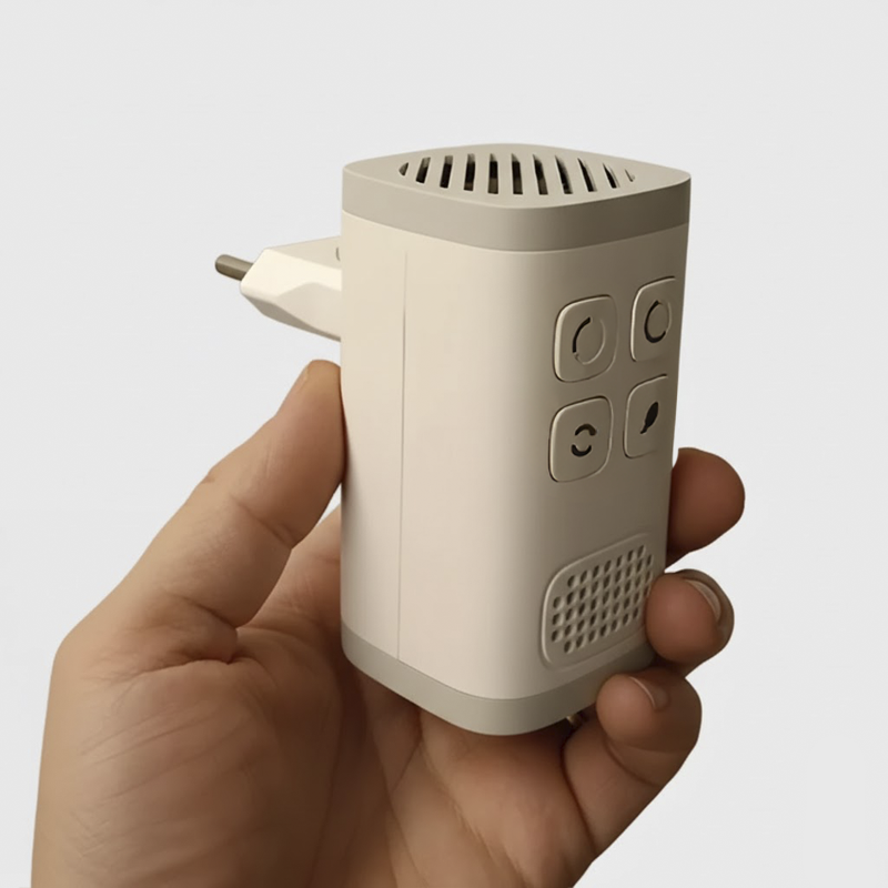 Den er lille, men kraftfuld! Et hurtigt tryk på en knap, og hele stedet dufter rent. Ingen underlige lugte, selv med kæledyr i huset.