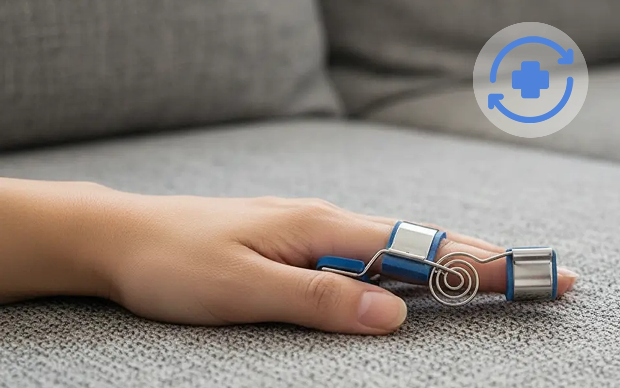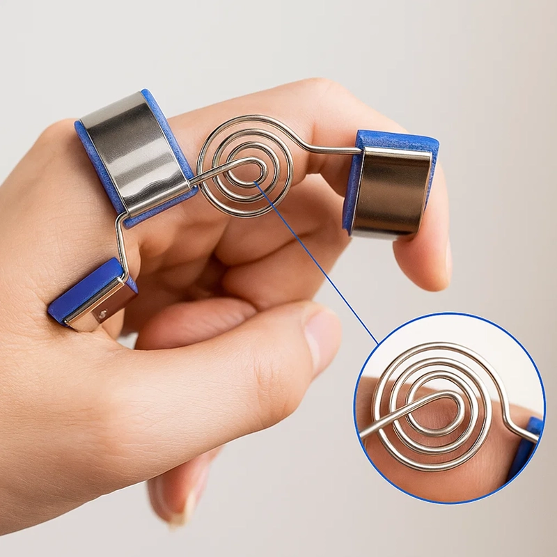 Jeg bruger den på min ringfinger, mens jeg sover, for at forhindre den i at krumme. Fjederstøtten lader den strække sig blidt, og jeg vågner med mindre stivhed.