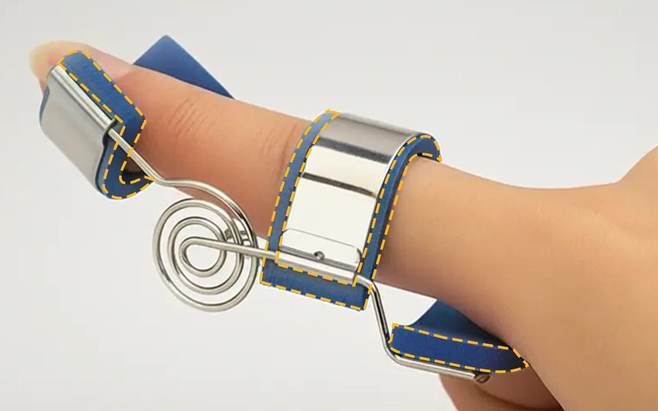Jeg købte denne skinne til min gigtplagede pegefinger. Den blide fjeder lader mig bøje langsomt uden skarp smerte, og det bløde for på indersiden irriterer aldrig min hud.