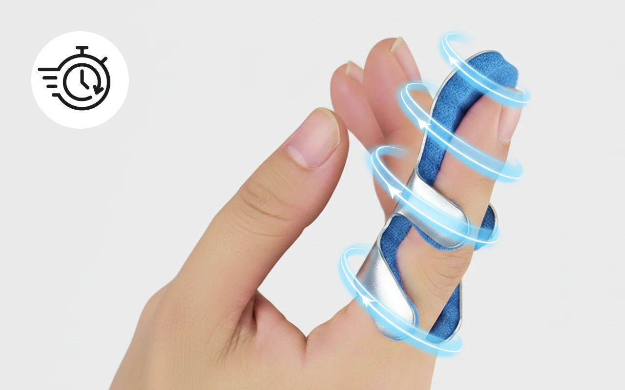 Aluminiumspladen holder de skadede led stabile for hurtigere heling. Ingen glidning eller forskydning betyder, at din finger forbliver beskyttet.