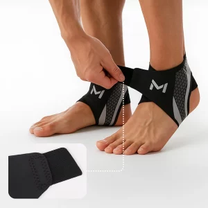 Det er nemt at få den til at sidde med Velcroen. Jeg kan hurtigt tage den på inden basketballtræning. Min fod føles sikker under hele kampen.