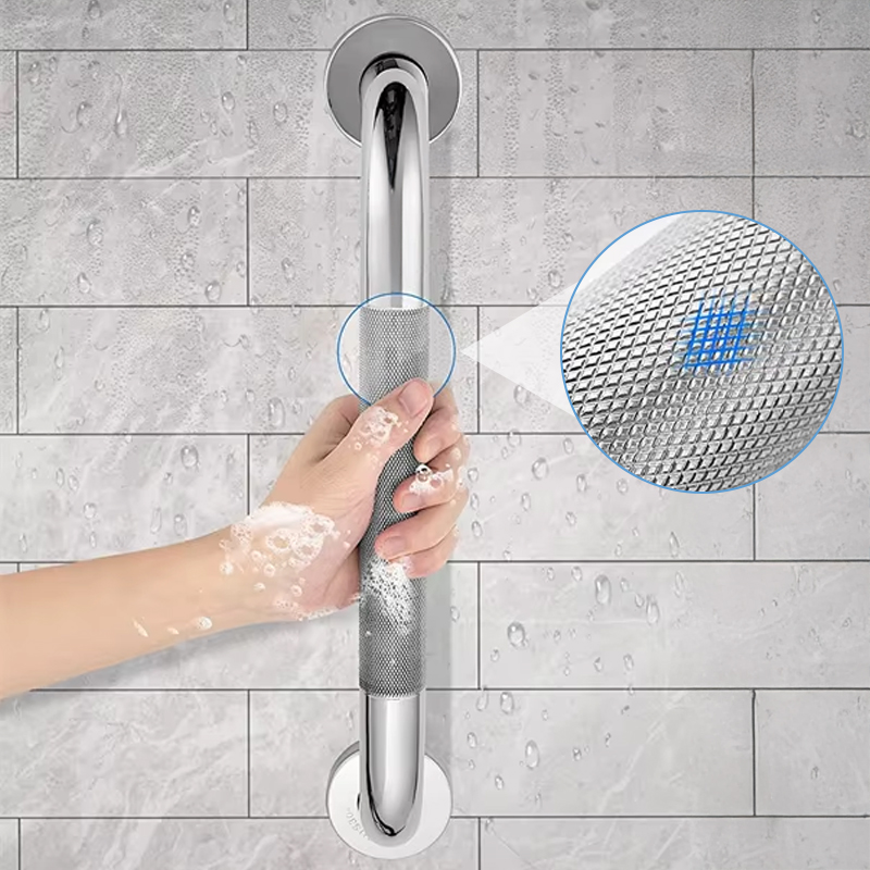 Jeg bruger stangen, når jeg står op af badekarret, og den glider aldrig i min hånd. Den skridsikre del virker virkelig godt.