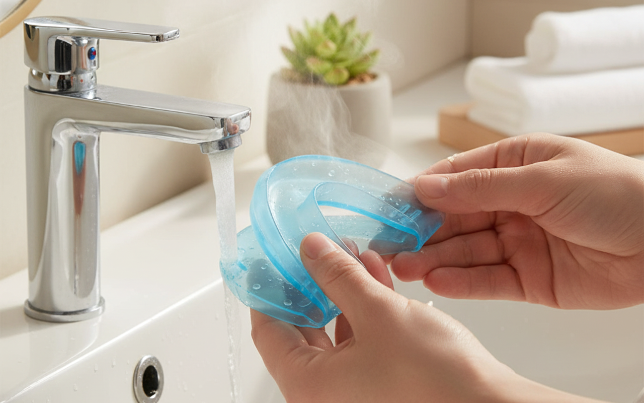 Form gelen til dine tænder med varmt vand. Justér pasformen for blid støtte uden smerte.