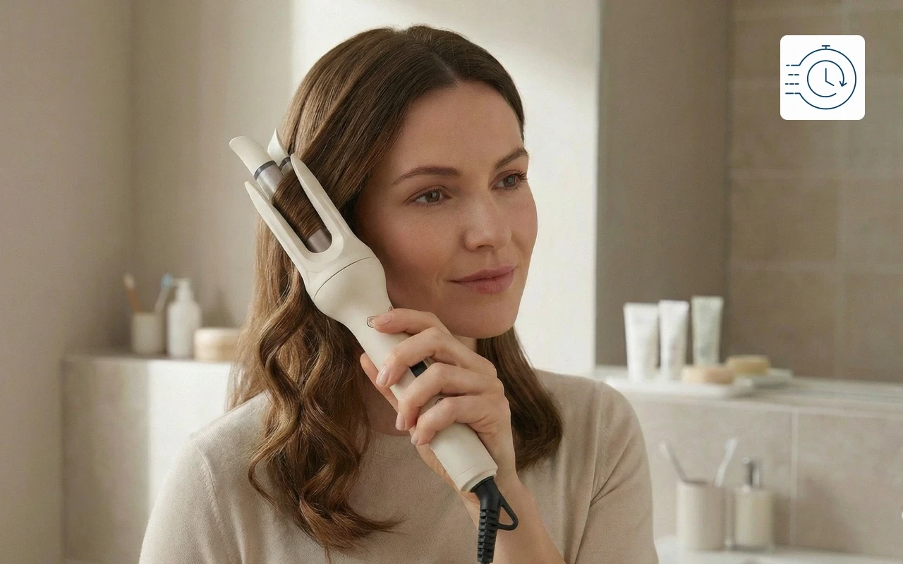 Gør din daglige rutine til et par enkle trin. Nyd silkebløde, smukke krøller uden varmeskader eller sammenfiltringer. Ortorex automatisk krøllejern giver professionel styling derhjemme. Vælg dit perfekte look på under ét minut. Føl dig selvsikker hver dag med sund glans.