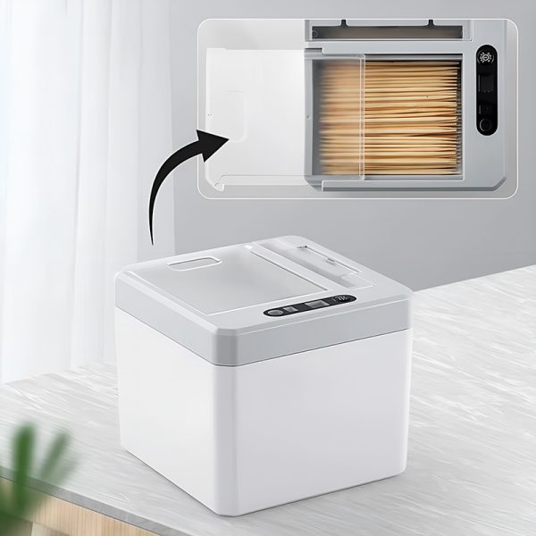 Jeg havde aldrig tænkt over, hvor praktisk en berøringsfri tandstikboks kunne være! Ingen flere spildte tandstikker over det hele, og den holder alt pænt og organiseret.