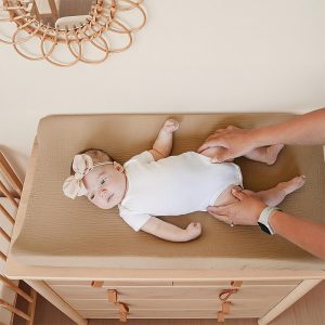 Mit lille barn virker mere afslappet og kølig under bleskift. Bomulden føles blid, og det er hurtigt og nemt at rengøre.