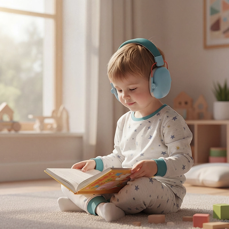 Specielle puder omslutter ørerne uden at klemme eller trykke på huden. Dit barn kan have dem på i timevis og stadig føle sig afslappet.