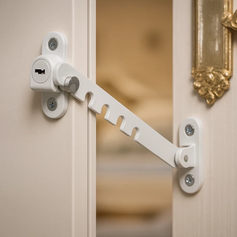 Jeg er så glad for, at jeg fik denne lås. Mit lille barn prøver altid døre, og nu bekymrer jeg mig ikke om, at hun kommer ind steder, hun ikke bør. Den føles stærk og passer også til alle vinduer.