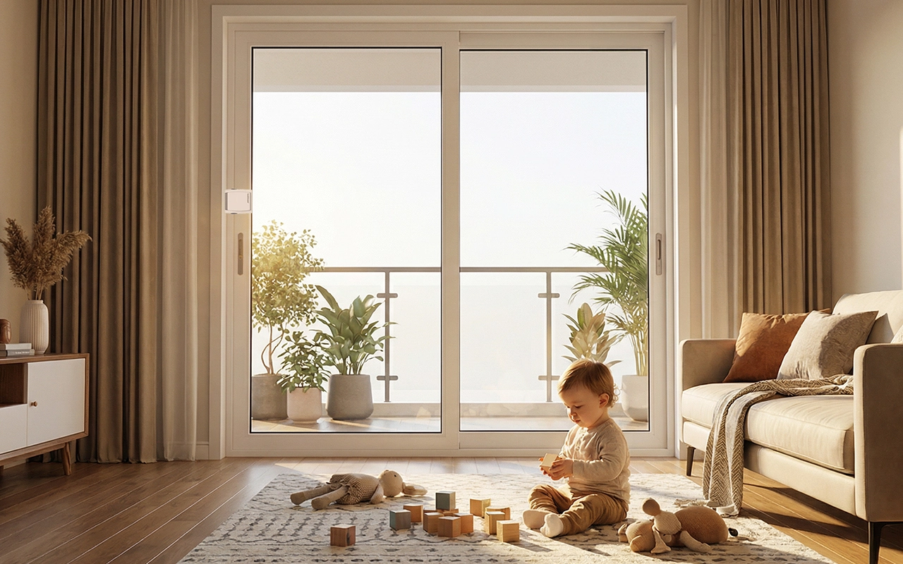 Børn forbliver beskyttede, uanset hvor de leger indendørs. Blokerer nemt farlige åbninger på skydedøre eller vinduer.