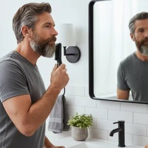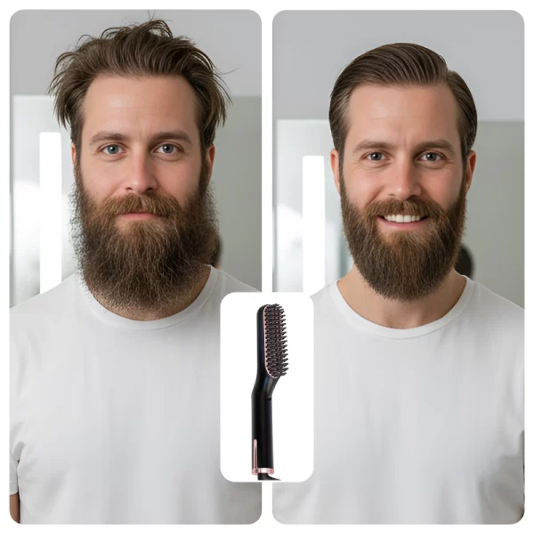 Den opvarmede børste gør mit tykke skæg meget nemmere at håndtere. Jeg bruger den på fugtigt hår, og den fungerer perfekt hver morgen!