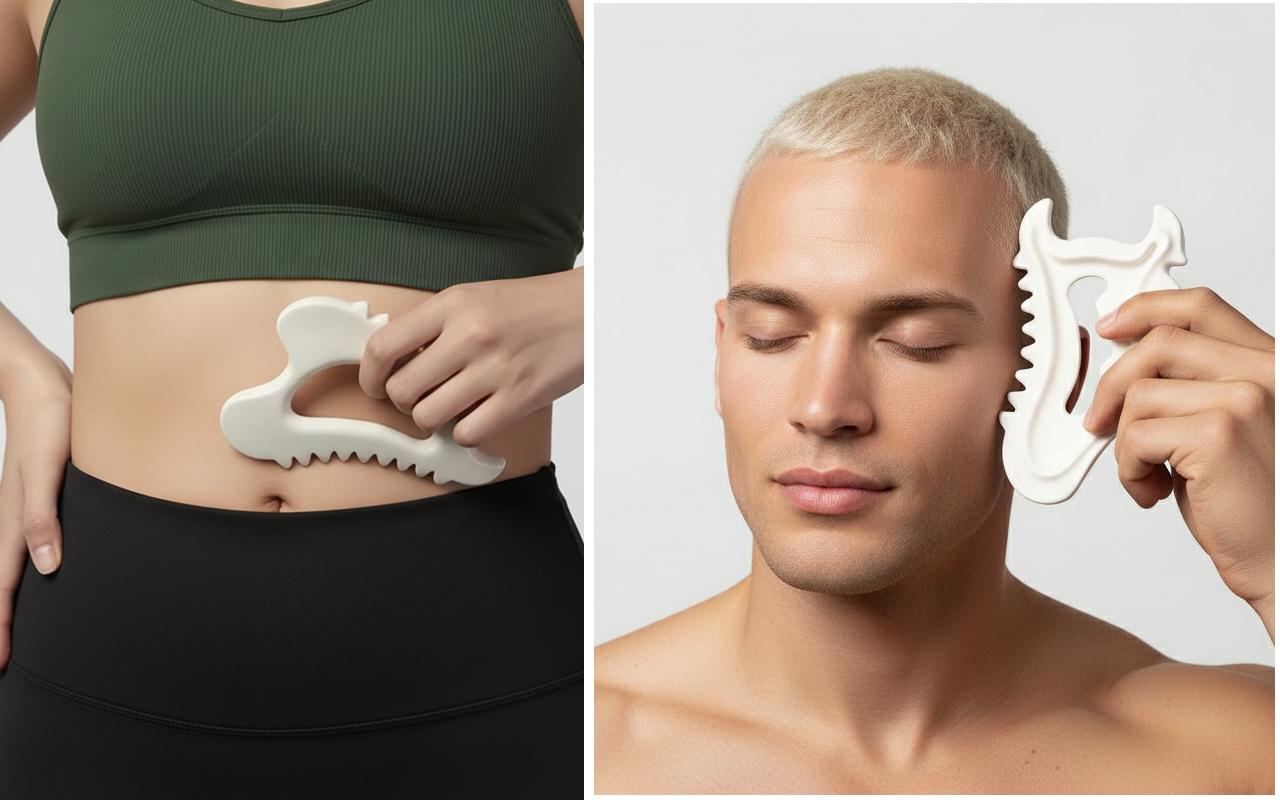 Lindr hverdagens spændinger med Ortorex gua sha værktøjet over hele kroppen. Blid skrabning beroliger muskler og forbedrer blodcirkulationen hurtigt. Glat keramik glider nemt over huden uden at forårsage ubehag. Den kompakte form passer perfekt i din håndflade, så den er nem at bruge.