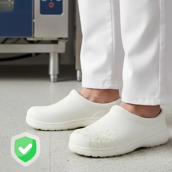 Ortorex kokkesko giver dig beskyttelse mod at glide hver dag. Fedt eller vand på fliserne bremser dig ikke på arbejdet. Det lette design holder dine fødder afslappede under hele vagten. Rengøringen er nem og hurtig efter en travl dag. Vælg komfort og sikkerhed til lange arbejdstimer uden besvær.