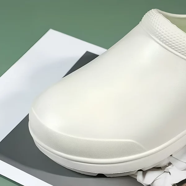 De bedste køkkensko jeg har haft—ingen ømme ankler, nemme at skylle rene, og de føles aldrig tunge. Elsker hvor hurtigt jeg kan bevæge mig i dem.