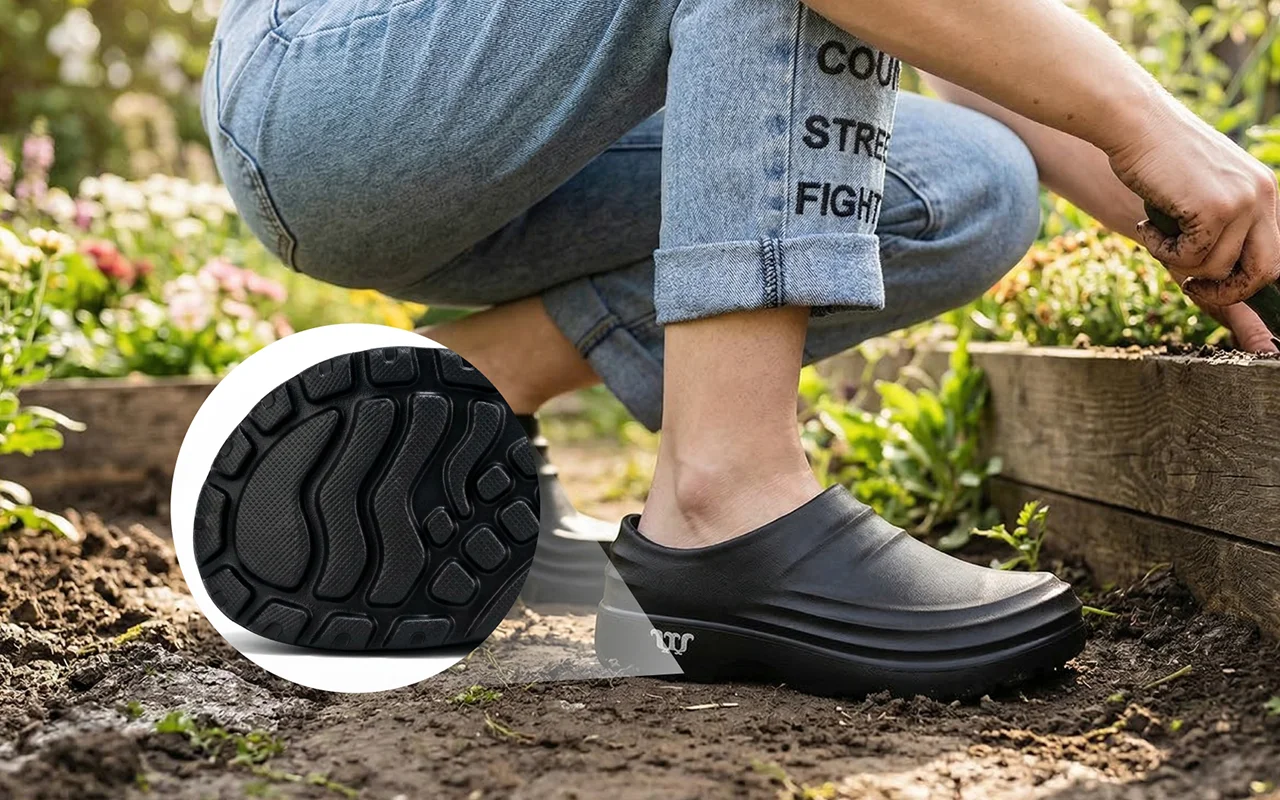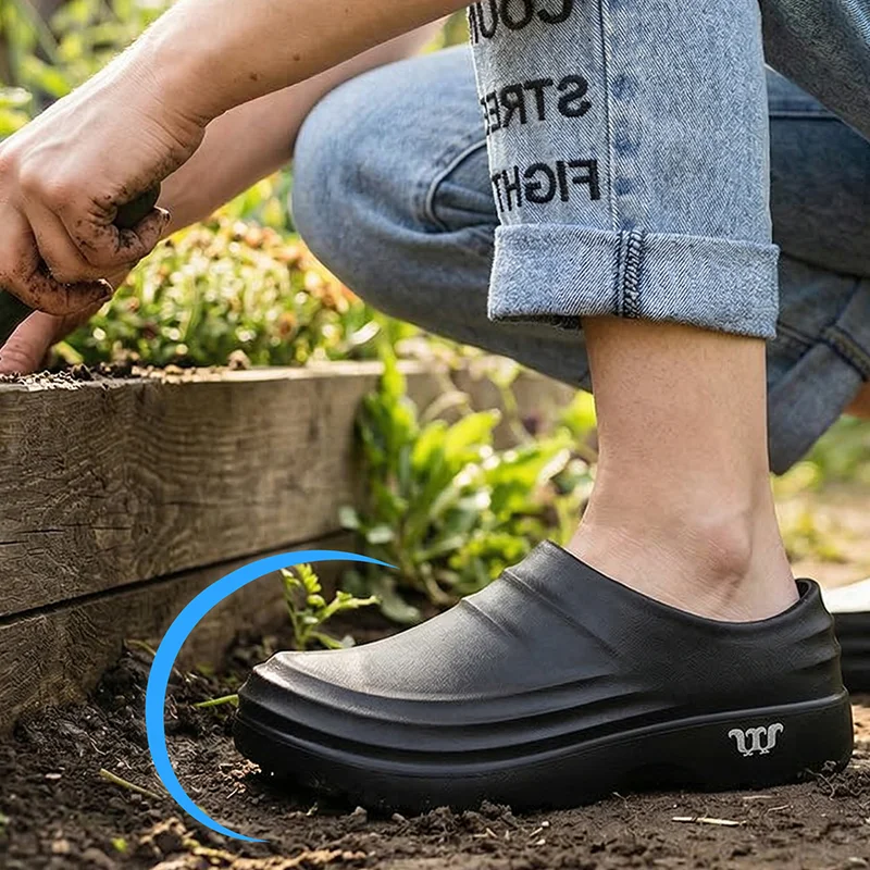 Jeg bruger disse træsko, når jeg vasker bilen og slår græs. Grebet på våd beton er sikkert, mine svangbuer føles støttet, og fødderne forbliver tørre og behagelige.