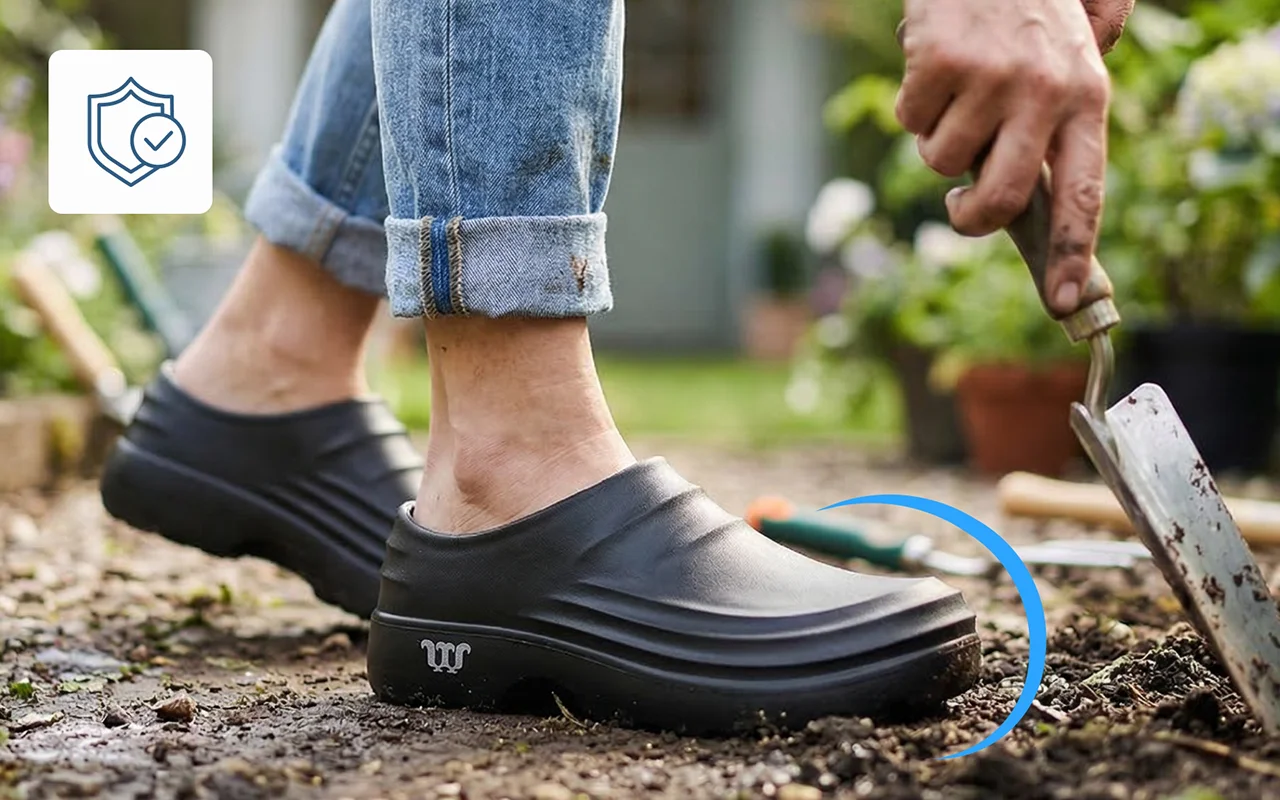 Oplev øjeblikkelig lindring af ømhed efter lange timer udendørs. Ortorex træsko omfavner dine fødder og stopper smerten, før den begynder. Nyd en ren, tør fornemmelse, hvad enten du er i haven eller derhjemme. Slip dem nemt på og kom hurtigt afsted.