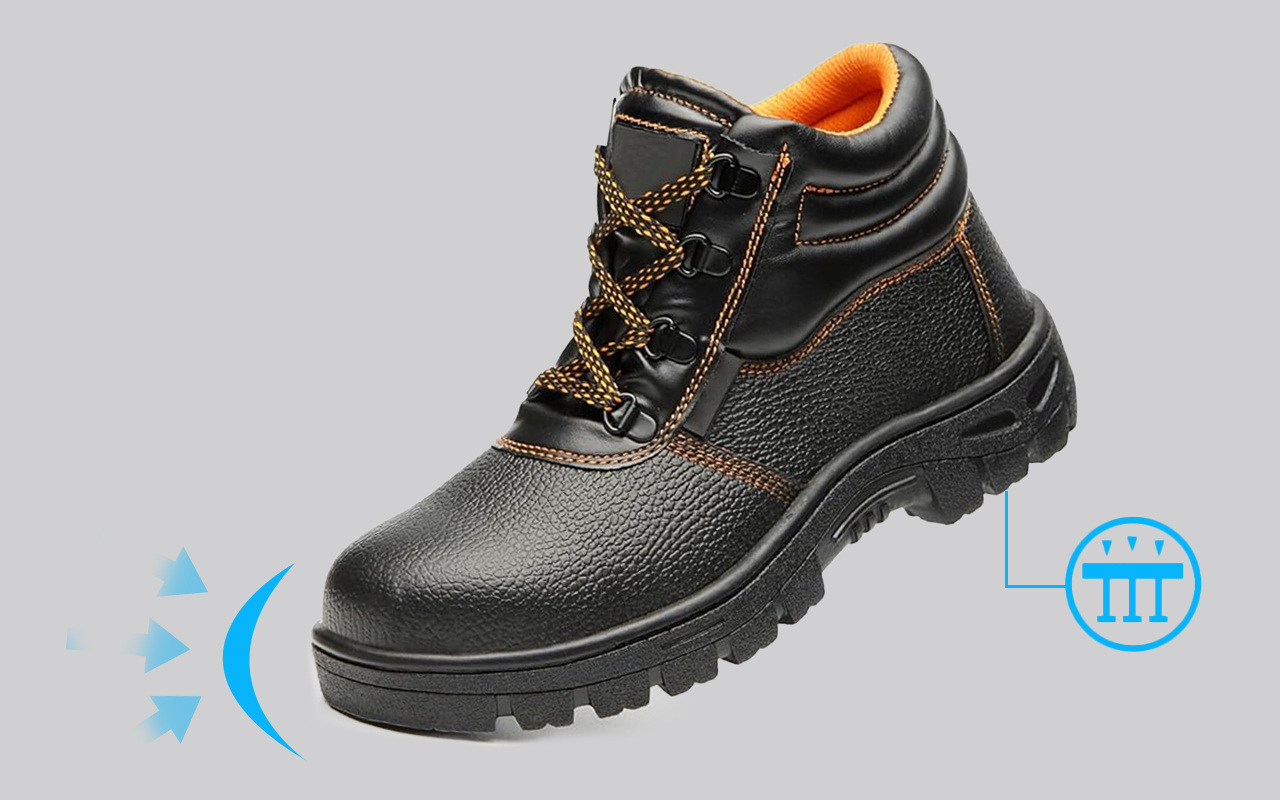Forstærkede ståltåkapsler beskytter mod knusningsfare på arbejdet. Dine fødder forbliver sikre, selv når der falder værktøj eller tungt udstyr.