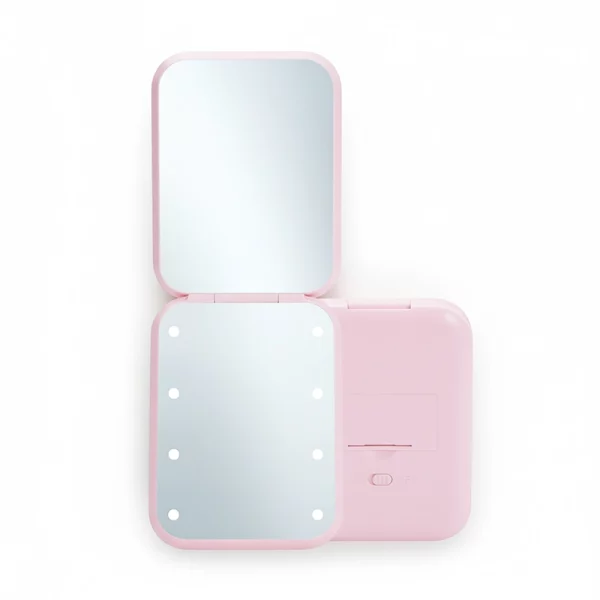 Dette spejl passer i min taske! Lysene er super klare, så jeg kan lægge makeup i bussen, hvis jeg har brug for det. Elsker det!