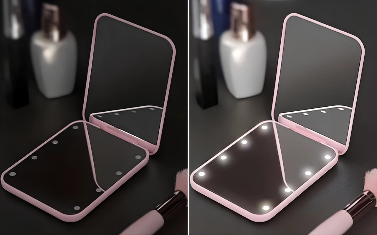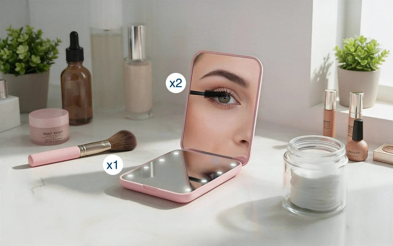 LED-lys lyser kraftigt og gør det nemmere at lægge makeup. Synligheden forbedres selv i svagt oplyste rum for maksimal præcision.