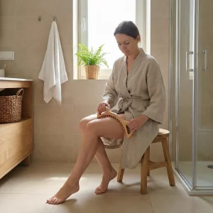 Jeg bruger træværktøjet efter mit bad med lidt olie. Det hjælper mine knæ og ankler med at slappe af, og mine lår ser mindre hævede ud.