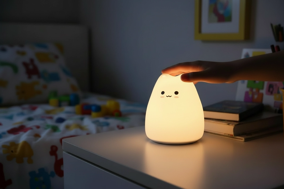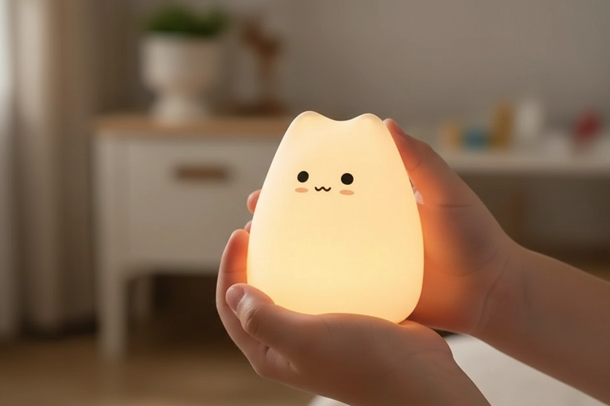 Silikoneskallen føles glat, blid og sikker for børn. Ingen skarpe kanter eller hårde overflader giver bekymringsfri komfort hver nat.