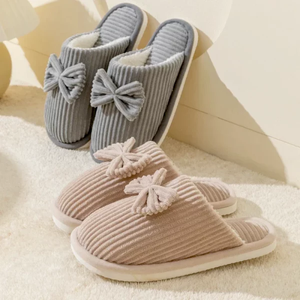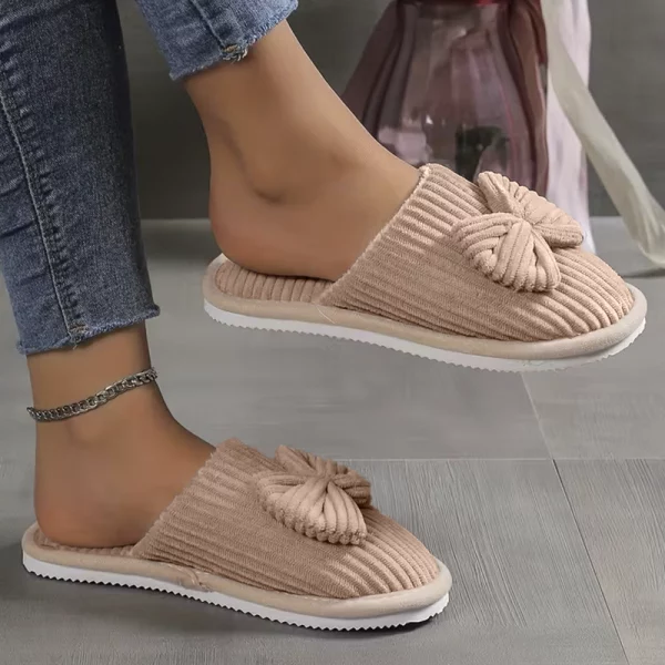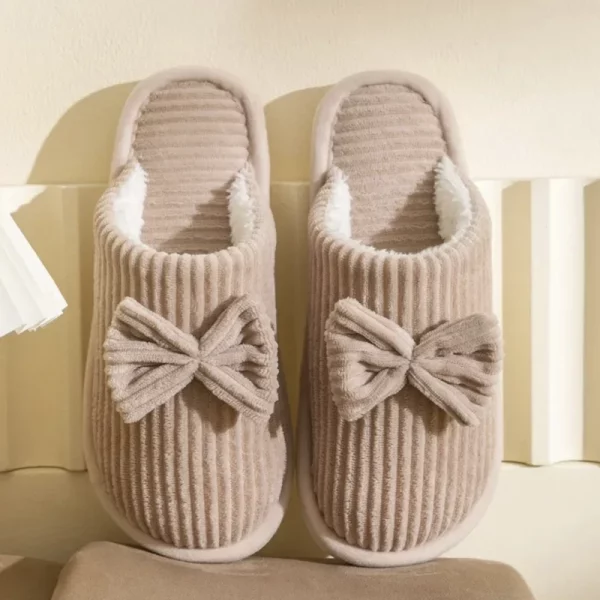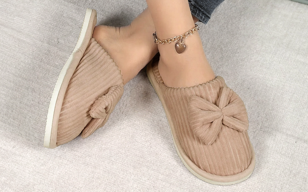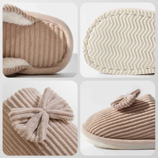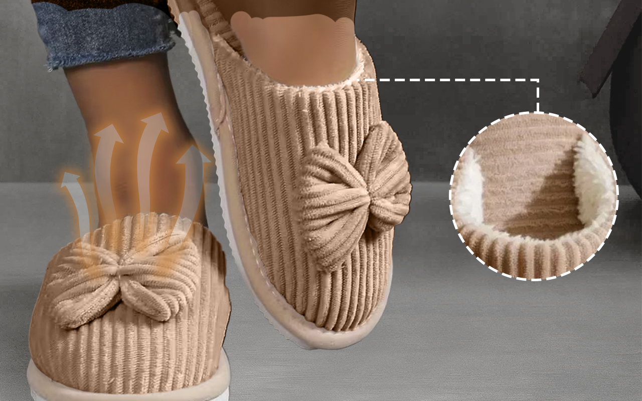 Det bløde plysmateriale indeni gør mine tæer så glade! Selv på de koldeste morgener forbliver mine fødder varme og behagelige. Og sløjfen er så sød.