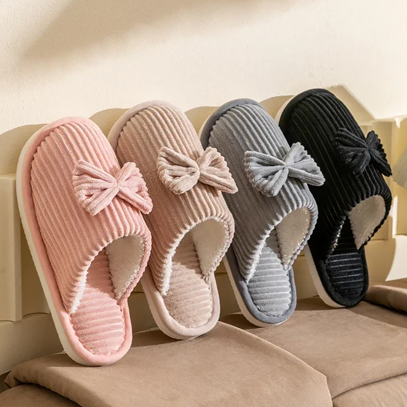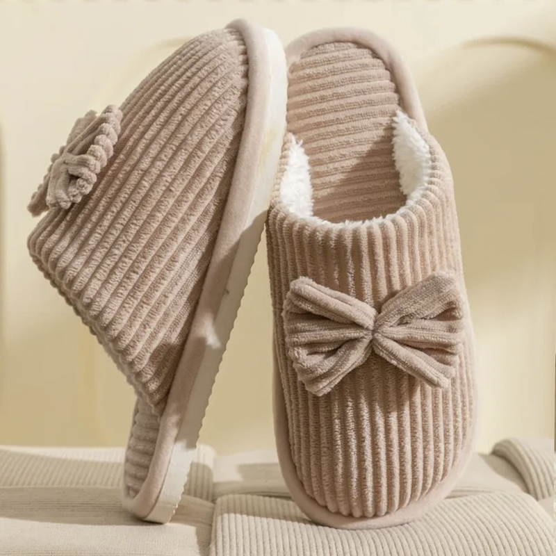 Det bløde plysmateriale indeni gør mine tæer så glade! Selv på de koldeste morgener forbliver mine fødder varme og behagelige. Og sløjfen er så sød.