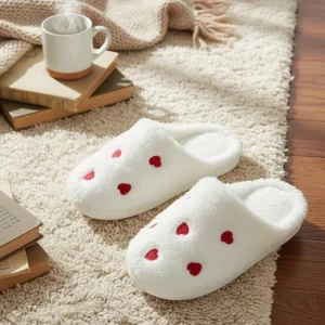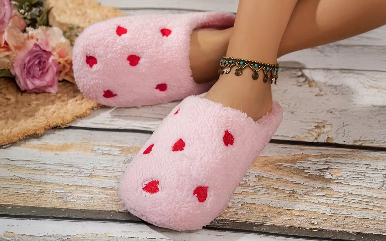 Søde hjerter giver ethvert outfit et glad løft. Disse hjemmesko gør det ekstra specielt og sjovt at slappe af indendørs.