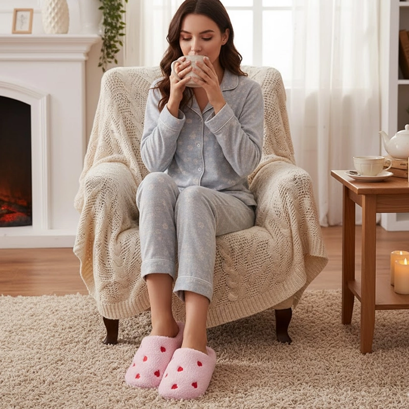 Nyd en fredelig aften derhjemme uden kolde tæer. Hvert skridt føles blødt på både tæpper og hårde gulve. Det legende hjertemønster bringer et smil frem på din dag. Bløde såler hjælper dig med at bevæge dig stille gennem hvert rum.
