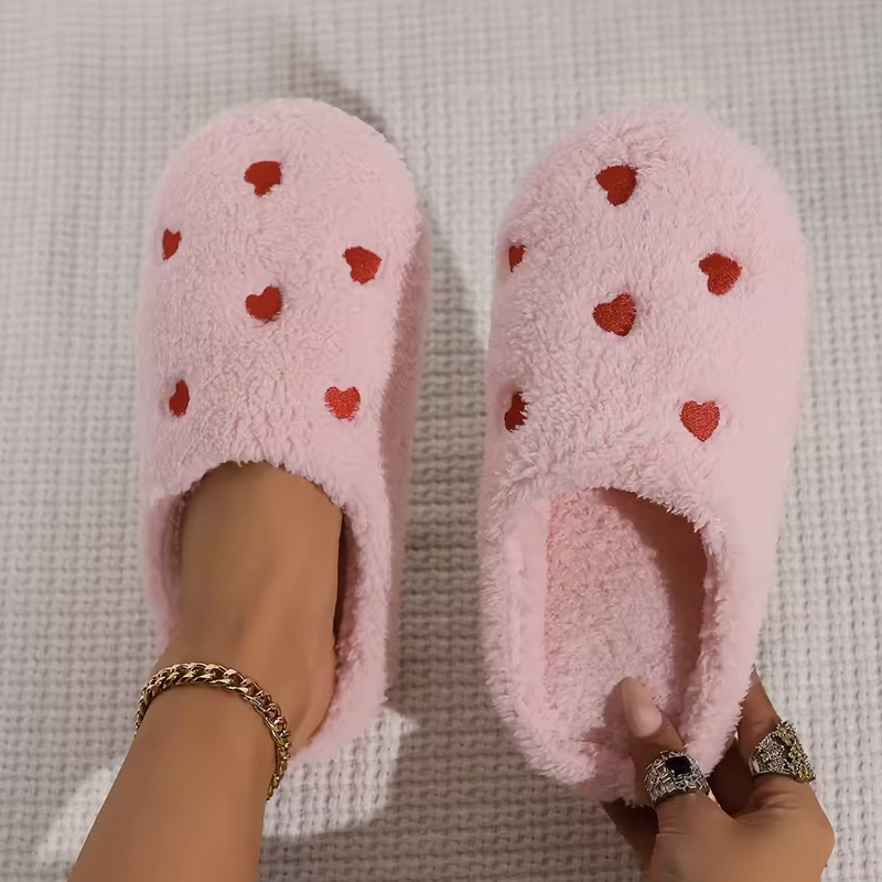 Søde hjerter giver ethvert outfit et glad løft. Disse hjemmesko gør det ekstra specielt og sjovt at slappe af indendørs.