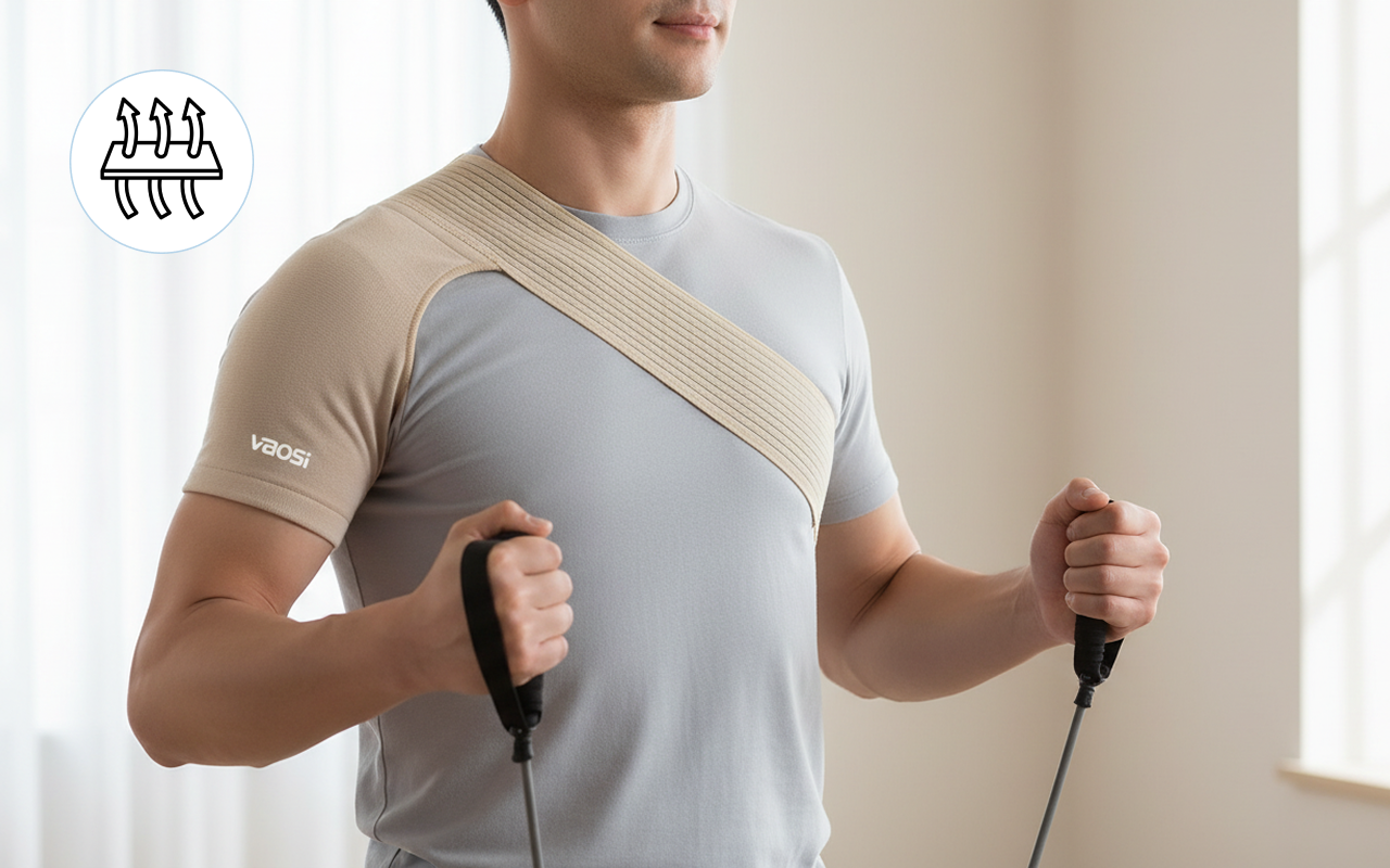 Jeg begyndte at bruge denne ærme under hjemmetræning. Den omslutter min skulder lige tilpas, giver mig mod på at løfte lette vægte igen og holder sig kølig hele tiden.