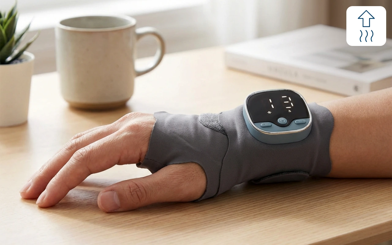 Jeg bruger dette håndledsbånd hver aften efter at have tastet hele dagen. Varmen og klembevægelserne får spændingerne til at smelte væk, og jeg sover endelig uden at kaste med hænderne.