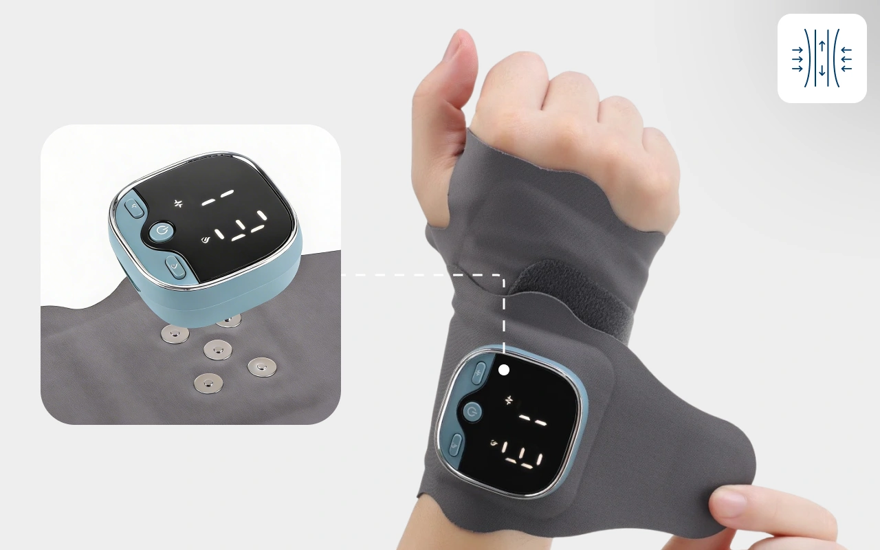 Vælg mellem fem massageindstillinger og ni styrkeniveauer. Få præcis det niveau, dine håndled har brug for, til ægte komfort.