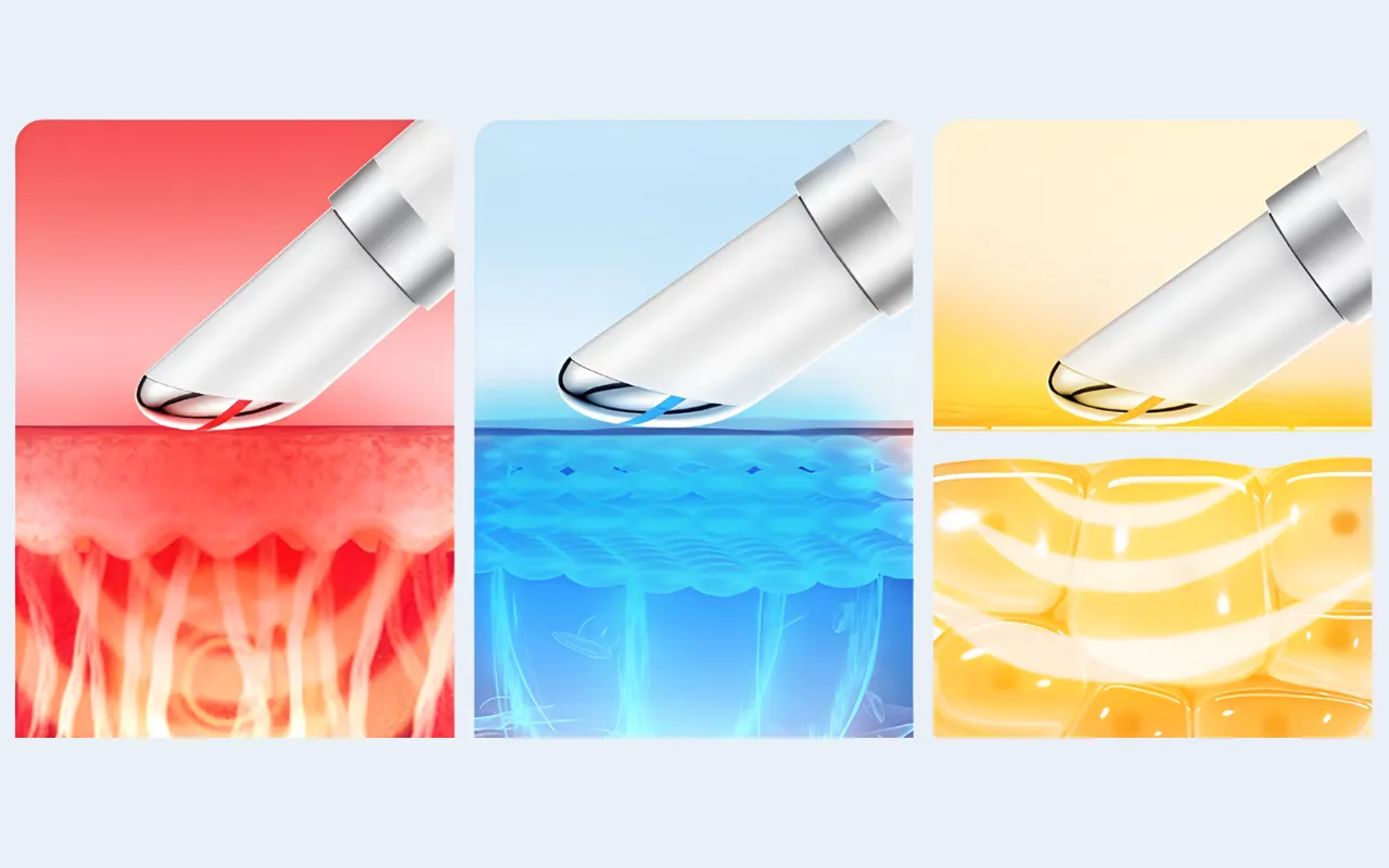 Denne innovative enhed lover omfattende hudpleje. Den kombinerer EMS, varme og lysterapi for at aktivere cellulær reparation og regenerering.