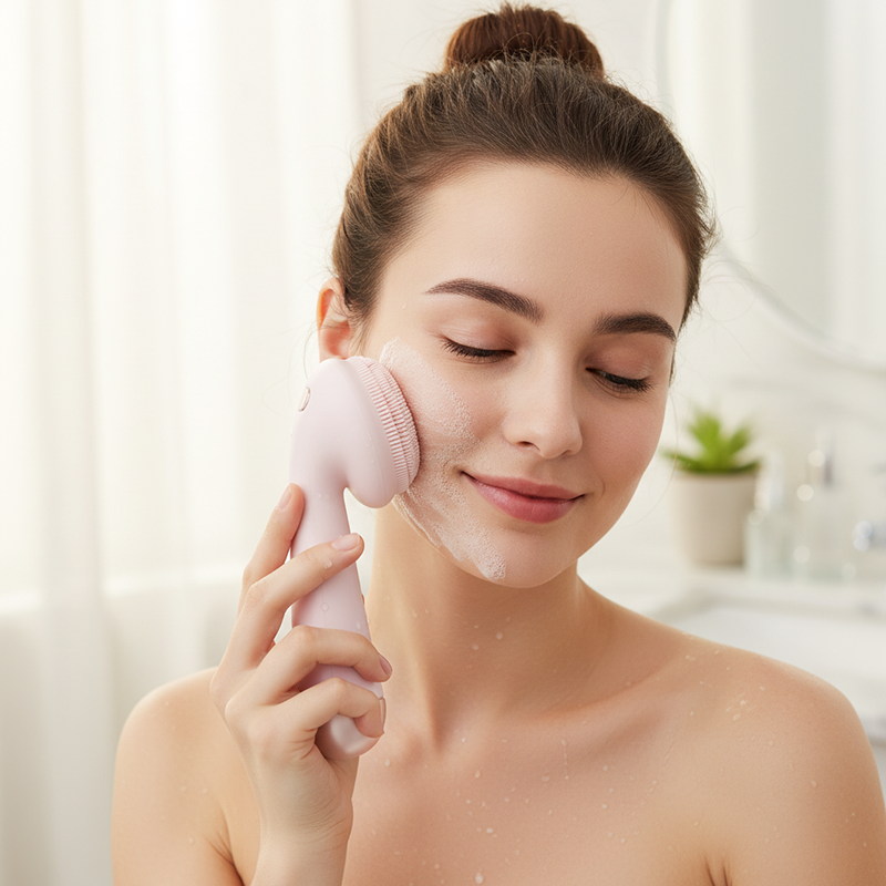 Siliconebørster beskytter huden mod skadelige bakterier. Nyd tryghed ved hver forfriskende brug.