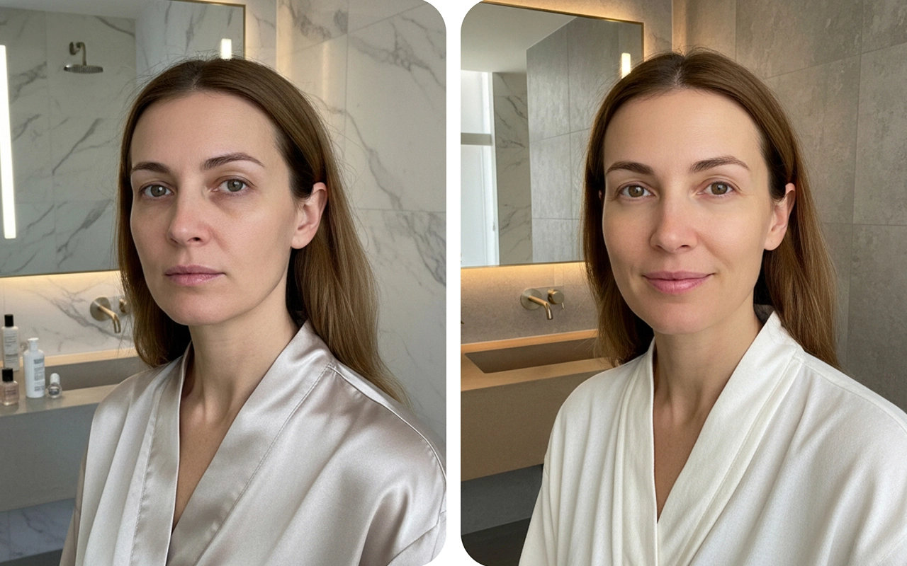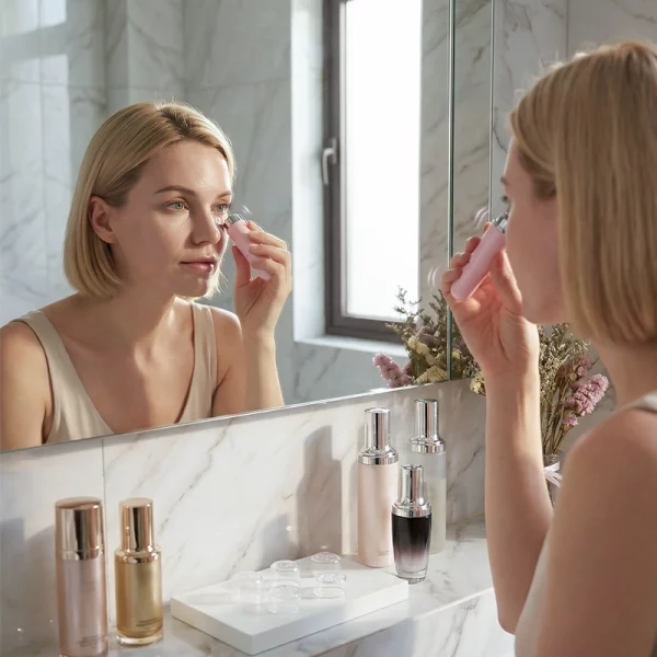 Mikrovibration hjælper med hurtigt at mindske mørke rande og hævelser. Daglig brug giver et friskere og mere vågent udseende.