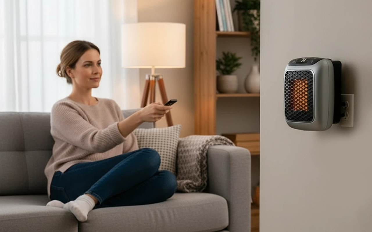 Jeg elsker, at jeg ikke skal rode med store, grimme varmeapparater. Bare stik den i, peg med fjernbetjeningen, og jeg bliver varm næsten med det samme.