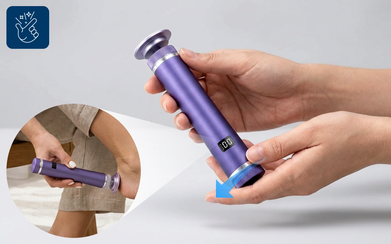 Enkle betjeninger og justerbar hastighed gør fodpleje stressfri. Det lette design sikrer komfort under hele rutinen.