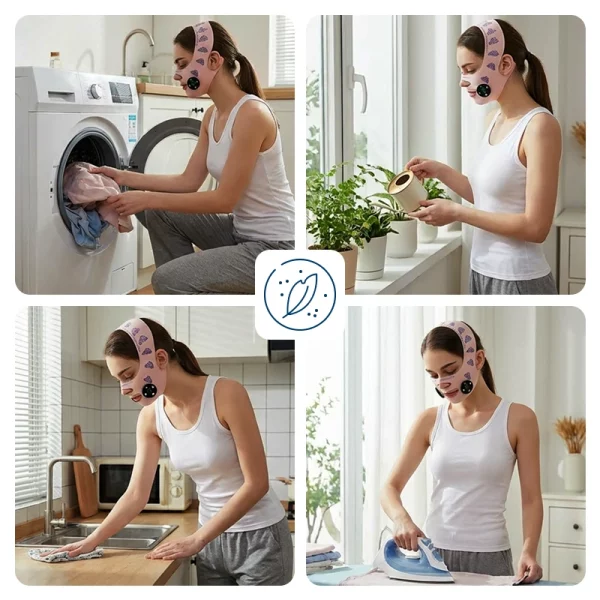 Denne maske hjælper mig, når jeg vil have, at min kæbelinje skal se skarp ud på billeder. Super hurtig at tage på og generer mig ikke når jeg sover.