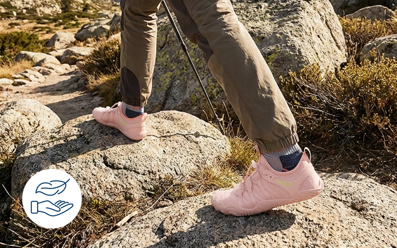 Jeg har vandret på stenede stier, og mine tæer kramper endelig ikke længere! Disse sko med bred pasform griber godt på stejle bakker og lader mig vride tæerne. Også gode til hverdagsture.